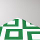 This bold green and white geometric pattern is an original ornamental design. White meanders angle around green diamonds containing white diamonds. Green zigzags provide subtle separation between the winding paths.
