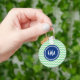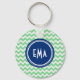 Green And White Monogram Geometric Chevron Pattern Keychain