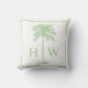 Green and White Palm Palmetto Tree Monogram Throw Pillow