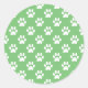 Green and white paws pattern classic round sticker