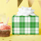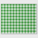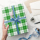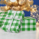 A wrapping paper designed with a green and white plaid pattern. Customize the white background among other options.