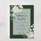 Green and white roses elegant simple wedding invitation