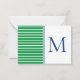 These cute monogrammed note cards feature classic bright green and white stripes on the front and back. Personalize the navy blue monogram on the front with your choice of initial and name or special text on the back.
