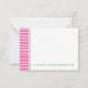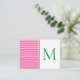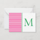 These cute monogrammed note cards feature preppy bright pink and white stripes on the front and back. Personalize the green monogram on the front with your choice of initial and name or special text on the back.