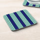 Green and white stripes pattern with navy blue beverage coaster