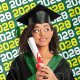 Green and Yellow Repeating Class Year Tapestry Backdrop.