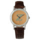 I like the illustrative watch with the lady on it. It is a great reminder that I am blessed and it has a very sturdy leather band. The colors are true and vibrant. Love the color of the Leather also. Very nice.