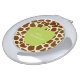 A compact mirror for teachers featuring an illustration of a green apple over a giraffe print background. Personalize with your name.