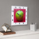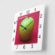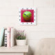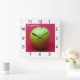 Big fresh green healthy apple against red background. Wall clock. You can change or delete the image and the template text An apple a day... Be healthy and have fun. Seems to be a good gift for a kitchen.