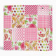 A binder for teachers featuring an illustration of a green apple decorated with a pink heart and white text "TEACHER." Background is a girly patchwork inspired design consisting of polka dot, paisley, stripes, zigzag, floral, and gingham patterns.