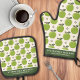 Green Apple Pattern Personalized Name Oven Mitt & Pot Holder Set