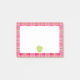Personalized Post-it® Notes for teachers featuring an illustration of a pink apple and a pink plaid design. Personalize with your name on apple.