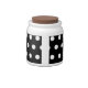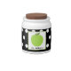 A candy jar for teachers featuring an illustration of a green apple. Personalize with your name under illustration. Background is black with white polka dots.