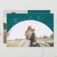 Elegant and minimal wedding thank you photo card featuring a large green arch frame with a script font that says "thank you" at the top. You can add a second picture on the back with a message.