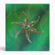 An abstract work in bright green and copper. A clear green gem is surrounded by copper-edged blades of grass accented with sparkling emeralds and orange starbursts. The waving, curving fractals in the background appear in deeper green, brown, and orange inside the copper filigree of the leaf motif.