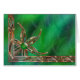 An abstract work in bright green and copper. A clear green gem is surrounded by copper-edged blades of grass accented with sparkling emeralds and orange starbursts. The waving, curving fractals in the background appear in deeper green, brown, and orange inside the copper filigree of the leaf motif.