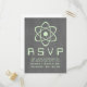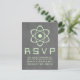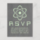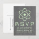 Cute and nerdy Atomic Chalkboard Wedding Response Card featuring a simple atomic symbol in mint green on a chalkboard look background. This geeky and fun wedding RSVP postcard is perfect for the science enthusiast couple! Easy to customize, simply add the details of your wedding in the spaces provided. Click "Customize It" to find more personalization options.