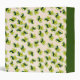 A binder with a green avocado pattern created with watercolor paint. This design has one pear-shaped avocado with stem and leaves intact and the other avocado is cut in half exposing its pit. Sitting on a bed of leaves. A rectangle frame layered over top so you can personalize with a name and subject title.