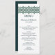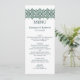 Elegant with a mediterranean twist this wedding dinner menu card design features a border of watercolor forest green and white spanish tile or azulejo tile.