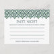 A spanish tile border in stunning shades of forest green adorn these cards. Use these elegant cards at your bridal shower party for the guests to share their favorite date night ideas for the newly couple. Use the template to add the bride's name and date of shower, and the future bride and groom' names.