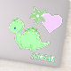 A cute little green baby dinosaur is the feature sticker in this adorable set. Along with the dinosaur is a green flower and a pink heart. Your child's name is in matching green on a separate sticker.