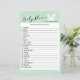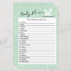 White bunny rabbit appears just above honoree's name and right beside "Baby Shower" script. Green, diamond shaped, argyle style background.