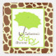Green Baby Shower Umbrella & Giraffe Print Square Sticker