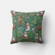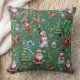 Christmas-themed pattern featuring Santa Claus, reindeer, snowmen, elves, Christmas trees, candy canes, and snowflakes on a green background