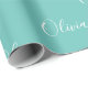 Elegant green background girly girl personalized wrapping paper. Perfect for a green birthday party.