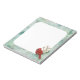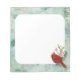 Bright red cardinal decorates the lower right corner of this pad with a green border