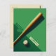 This postcard's theme include an illustration of a baseball bat and ball placed on a tow-shade-green background with the "batter up!" text with a customizable name. This is a great postcard for young baseball players and baseball lovers.