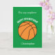 A green personalized basketball 9th birthday card for nephew, son, grandson, etc. You will be able to easily personalize the front with his name. The inside reads a birthday message, which you can easily edit as well. You can personalize the back of this basketball birthday card with the year. This would make a unique birthday card keepsake for kids who love basketball.