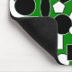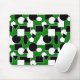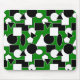 This mouse pad has a Bauhaus design of triangles, circles, rectangles, and pentagons in black and white on a field of green.
