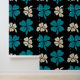 Green Beige Clover Shamrock Hand Drawn Pattern Wallpaper. Beautiful and simple 4 leaves clovers on green and beige colors on a black background. The design is a digital drawing.