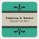 Elegant and sophisticated Fancy Art Deco Wedding Stickers in emerald green and tidal foam beige featuring an art deco flourish and dotted border and a two-toned color scheme. This modern design is perfect for a deco themed wedding. Easy to customize, simply add your wedding details in the text fields provided. Click "Customize It" to find additional personalization options.