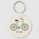 A keychain featuring an illustration of a green bicycle. Personalize with your name under bike.
