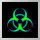 Black poster with green and blue biohazard symbol.