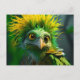This postcard has a green bird on it.