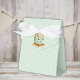 Simple pastel green favor box with an illustration of a bird in a green egg. Perfect for baby shower favor gifts. Illustrated and designed by Patricia Alvarez.