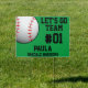 Cheer on your team with this Green Black Baseball Team Yard Sign. Personalize with your athlete's number and name, and the name of the team. You can even change the message. Show off your team spirit and decorate your lawn this summer.