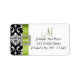 Classic Vintage Black and White Damask pattern with printed Metallic Gold Initial M Wedding RSVP Envelope Return Address Labels. This elegant design uses digital effects to PRINT the look of a lime green satin ribbon and diamond brooch and a 3D effect gold metallic monogram initial on a mat paper adhesive label by Avery. Elke Clarke©2012 For different letters or initials, different colour ribbons or damask pattern please contact luxuryweddinginvitations@gmail.com.