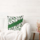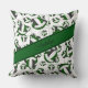 This cute volleyball team colors throw pillow for girls features a pattern of varied size stylized green, black and white volleyballs turned every which way overlying a volleyball net detail graphic - the volleyballs' green and black panels are blended with an artsy, girly floral pattern - personalize her name in a sophisticated handwritten font on a bold, angled, full width green color strip - background and name strip colors are customizable - by katz_d_zynes