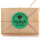 This modern green and black custom graduation party sticker features classy typography of your high school or college name for the class of 2025. Customize with your graduating year under the chic handwritten script and grad cap for great personalized graduate stickers.
