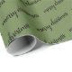 This wrapping paper features black text of the phrase 'merry christmas' on a green background. Text can be personalized.