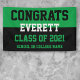 Hang this Green & Black Minimalist Graduation Party Banner to honor your graduate. Personalize with your grad's name, school, and class year. This bold school colors banner features a classic font and plenty of school spirit.