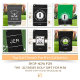 Modern design features a green and black color block background showcasing a realistic golf ball with a male golfer silhouette in black. Fun golf quote text reads, "Eat, Sleep, Golf, Repeat! Any Questions" in white typography. Customize with name, initials or short line of custom text. Contact beachpausedesigns@gmail.com or message me at the bottom of this listing with questions or custom color requests!