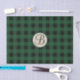 Green Black Plaid Checker Rustic Monogram Initial Tissue Paper