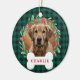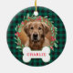 Green & Black Plaid Dog Photo Christmas Wreath Ceramic Ornament