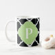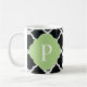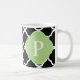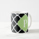 Green Black Quatrefoil Monogram Coffee Mug
