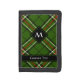 Green, black, red and white tartan design. Seamless pattern. Custom text and monogram.